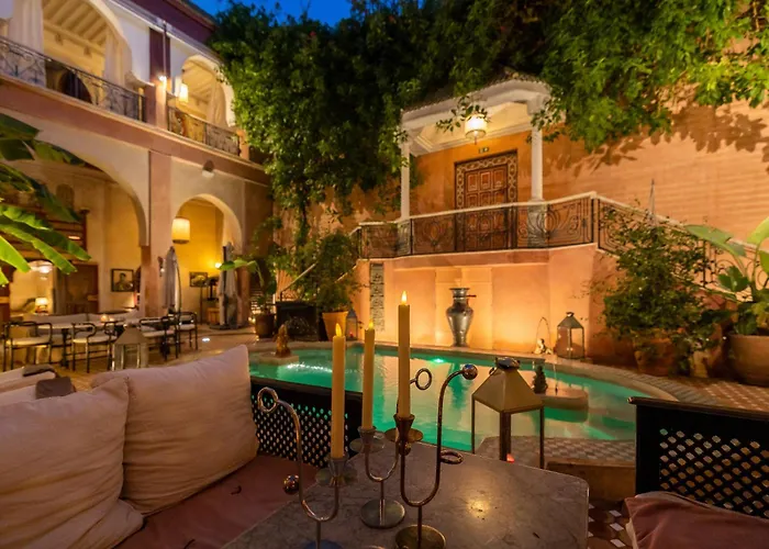 Located approximately 25 minutes' walk from Place des Ferblantiers, the 3-star Indian Palace Marrakesh hotel includes 10 rooms. Offering views of the patio, the riad is quite close to Ensemble Artisinal Marrakech and boasts a year-round outdoor pool.